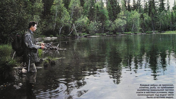 Подходы к сибирской щукеКатегории статьи: Щука / Кичера / Кулинда / Кичерское![]() ![]() Первые же выпотрошенные трофеи показали, что питалась она в основном хариусом. Судя по всему, это давалось ей очень и очень не просто, учитывая высокую прозрачность воды и острейшее зрение хариуса. У большинства выловленных нами щук желудки были пусты, и вес самых крупных экземпляров не превышал 5 кг. В связи с малокормностью озера популяция щук оказалась не столь многочисленной, как я надеялся, но все же после длительных поисков нам удалось обнаружить два основных участка их местонахождения. Первый из них располагался в верхней части озера, неподалеку от устья Кичеры, и представлял собой обширную песчаную мелководную отмель с плавным уклоном, простирающуюся на 100 м от брега. В конце отмели, на глубине 1.5-2 м, располагались большие заросли водных растений, тянущихся до самой поверхности воды, с узкими проходами между ними; далее дно резко обрывалось в глубину. Следует заметить, что водоросли на озере больше нигде не встречаются. Близость устья, в направлении которого мигрируют хариус и ленок, и укрытия в виде больших, с четкими границами, островов растительности сделали этот участок самым перспективным местом для щучьей охоты на всем водоеме. Водоросли здесь не очень густые, со множеством прогалин и небольших участков чистой воды, и именно здесь мы наблюдали самые плотные скопления щук. Отличная видимость и большое количество щук позволили нам сделать: очень интересные наблюдения и понять, как они располагаются, находясь в засаде или отдыхая. Большинство хищниц держались в траве, причём особи разных размеров находились в непосредственной близости друг от Друга и стояли как у дна, так и в толще воды и у поверхности, причем, на первый взгляд, абсолютно хаотично, без малейших признаков какой-либо логики или системы. На самом деле, отдыхая, пассивная щука находилась в основном вблизи дна, выбирая места в самых густых зарослях, подальше от открытых участков. Активная же щука зависала ближе к поверхности, в небольших окошках, или просто среди редкой растительности, а тоже оккупировала места у границы водорослей, повернувшись носом к чистой воде. Наилучшего результата можно было достичь, облавливая каждый участок в два этапа: сначала исследовать внешнюю границу водорослей, а затем, сменив приманку, "прочесать" и сами заросли. Для того чтобы эффективно подсечь и вытащить из водорослей крупную рыбу, необходим спиннинг быстрого строя, с малорастяжимой леской. Я использовал удилище "Freiburg" немецкой фирмы YAD, длиной 2,70 м, с тестом 10-30 г, и рекомендованную производителем катушку этой же фирмы. Это легкий и изящный спиннинг быстрого строя, с кольцами SIC и пробковой рукояткой, изготовленный из IM6-карбона, в то же время он достаточно жесткий и прочный, что позволяло легко удерживать щуку и полностью контролировать процесс вываживания. При ловле в водорослях крайне важно использовать плетеный шнур вкупе с чутким удилищем - это значительно увеличивает чувствительность снасти, и в результате вы можете точно регистрировать многочисленные зацепы за растения и резким, кистевым взмахом освобождать от них приманку. Меньший, по сравнению с мононитью, диаметр "плетенки" и большая длина спиннинга существенно увеличивают дальность заброса - это часто бывало необходимо, пос