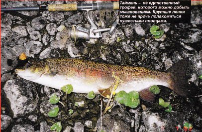 Тайменя на “Мыша” или краткий курс мышкования.Категории статьи: Рыбы / ТайменьИздревле славились таежные реки России своей девственной красотой, чистотой и студеностью стремительных струй. Живописными берегами, скалами и каменистыми косами. Славились обитателями своими: хариусом с огромным, радужным спинным плавником, пятнистыми красавцами – ленками и, конечно же, царем Российских рек, жемчужиной речных струй – тайменем. Десятилетия растет речной исполин в речной стихии, проходя трудный путь от малька до настоящего речного гиганта. С мелких, почти не заметных человеческому глазу водных беспозвоночных начинает таймень свою пищевую карьеру и в зрелости уже не гнушается скушать с поверхности утку, а то и гуся. Еще несколько лет назад, наши, амурские геологи рассказывали мне историю, как на их глазах охотник с р. Селемджа, на “мыша” размером со свернутую кроличью шапку, с леской почти в 2мм поймал тайменя. Таймень, не долго думая, стащил лодку оморочку (в которой стоял охотник) с берега в воду, зацепился пленившей его леской за двигатель, перевернул лодку и был таков! Еще помнят старожилы далеких таежных деревень, как впрягали коня, что бы вытащить из реки запутавшегося в сети Хозяина. Тайменя. Но идет время и вот уже становится нашим прошлым и забывается ни на что не похожая и чисто русская рыбалка “На мыша`”… Туюн Первая моя встреча с довольно серьезным тайменем произошла на далекой реке Туюн. Бурными потоками стекает эта река с живописнейших сопок, закручивает струи свои на бешеных перекатах и порогах. Огромными валунами загромождено русло, да так, что порой трудно протиснуться между ними на четырех местном катамаране. Сплавлялись мы уже 4 дня, ловили радуги хариусов и отдыхали душой и телом от опостылевшей городской суеты. К местам стоянки наша команда всегда относилась особенно трепетно. Выбирали, что бы были рядом дрова, обдувчик от мелких кровососов спасал, подальше от болот и марей, конечно же. Да и берег, хоть не сильно, но высокий. Дабы, поднявшаяся внезапно вода не застала коварно, да не утащила за собой не хитрые рыбацкие пожитки. Так и в тот вечер. Зачалились, затаборились, дрова, костер, ужин. За ужином, как водится, боевые 100 грамм под свежайший хариузинный малосол, да только что нарванную черемшу. Чай с веточкой лимонника. Небо глубокое засыпано пугающе-яркими звездами, в отдалении одиноко-тоскливо ухает в темень филин. Идея помышковать пришла неожиданно. Никогда не забуду ту, первую свою мышь, изготовленную в мечущемся, неверном свете таежного костра на берегу таежной реки Туюн. Да собственно и не из чего было делать ее. Просто завалялся в рюкзаке небольшой кусок паралона и катушка черных, хэ-бэ-шных ниток. Нашелся мощный тройник и свободные руки. Тройник – к леске, Клинская, 0,4мм, купленная уже перед самым убытием, намотана бесформенной бухтой. Чуть выше тройника – обворачиваю леску поролоном, пуская по верху виток за витком черную нить. Постепенно, нить к нити, мое изделие приняло конусообразную форму, лишь отдаленно напоминая мелкого грызуна. Легкая. Ничего, поролон намокнет, потяжелеет. Спиннинг, один из первых из стеклопластика, верхнее колено выброшено в момент покупки (ни к чему оно). Кольца – проволока. Катушка “Невская”, новая, пахнет еще заводской смазкой. Оставив ребят у равномерно горящего костра, спускаюс